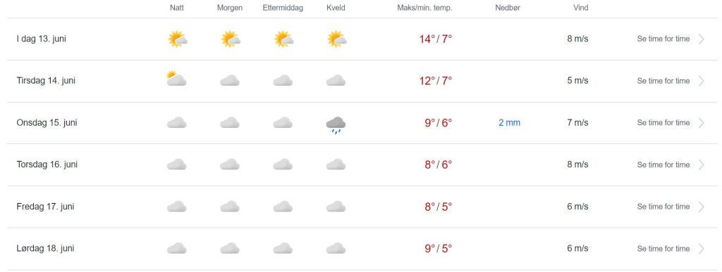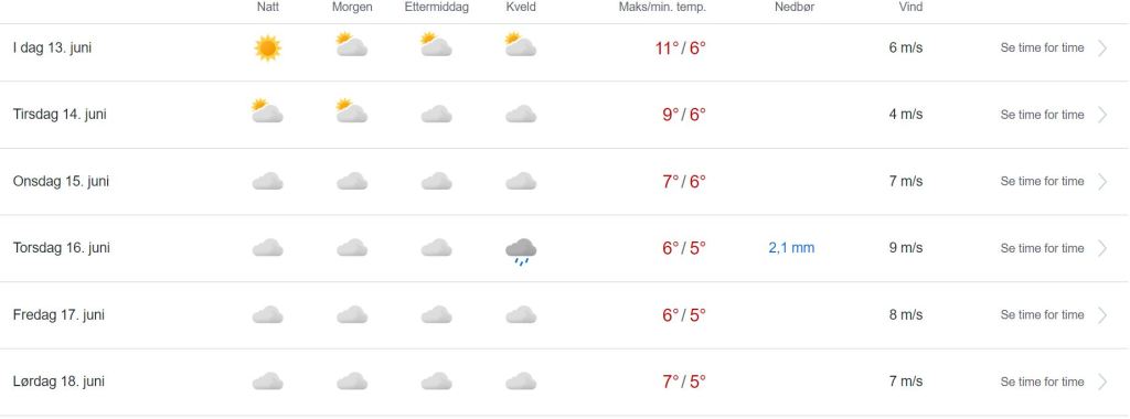 (METEROLOGISK INNSTITUTT): I Finnmark idag Mandag 13.juni ventes det om vestlig bris, liten til stiv kuling på kysten øst for Nordkapp, minkende i ettermiddag. Spredt regn på kysten i vest først på dagen. Kan hende enkelte ettermiddagsbyger på Vidda, utrygt for torden. Ellers opphold og perioder med sol.